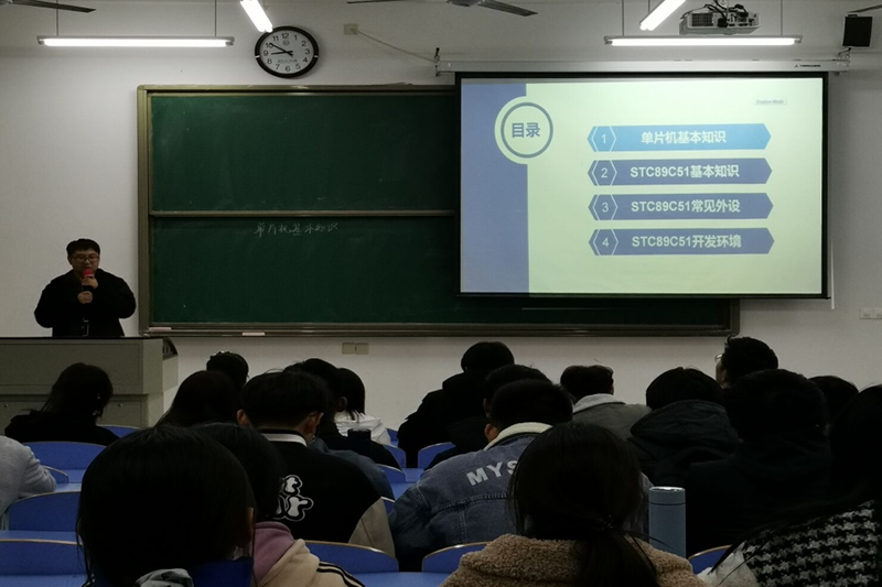 此次给同学们培训的是STC公司的89C51单片机,王志给同学们详细讲解了STC89C51单片机的基本知识,常见外设,以及开发环境。为了便于同学们理解,王志给大家放了相关视频。