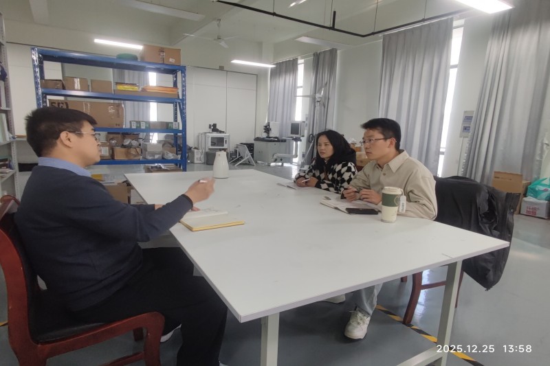 在王风涛教授的陪同下,我校教师团队参观了其科研实验室。王教授系统讲解了实验平台的设备构成、功能定位与技术路线,详细阐述了从基础研究、技术开发到产品推广的全链条布局。双方就具体技术细节、成果转化路径等实际问题进行了现场交流与讨论。
