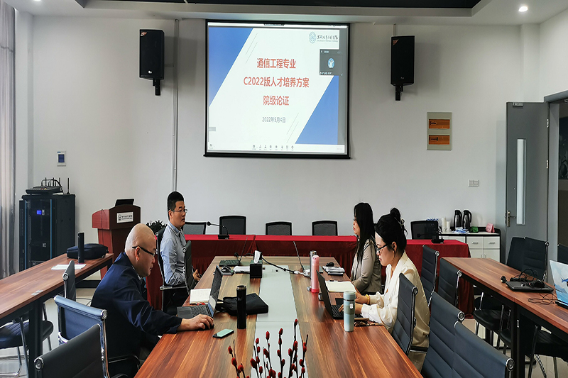 2022年5月4日上午9点,电气与电子工程学院在博识楼A4S403召开了C2022版通信工程专业人才培养方案院级论证会。论证会邀请了3位高校专家:安徽工业大学电气与信息工程学院院长王兵教授、北京邮电大学信息与通信工程学院副院长尹长川教授和上海大学通信工程系副主任赵恒凯教授;邀请了2位企业专家:新华三集团安全研究院顾成杰院长以及中国移动芜湖公司刘琰总经理。5位专家以腾讯会议的形式参加论证。本次会议由校长助理、执行院长章敏风主持,学院副院长马利祥、院长助理梁美玉、凌有铸教授及学院各教研室负责人参加会议。
