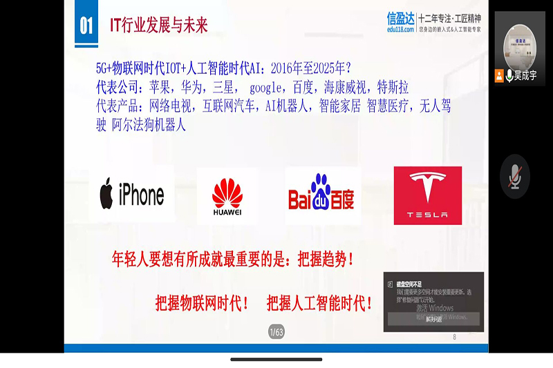 为进一步加深学生对嵌入式技术的了解,引导学生合理确定自己的职业规划,5月4日下午,电气与电子工程学院举办了AIOT时代:嵌入式技术的机遇与挑战讲座,本次讲座邀请到了南京信盈达电子技术有限公司教研部经理、高级工程师吴成宇。讲座采用腾讯会议的形式。