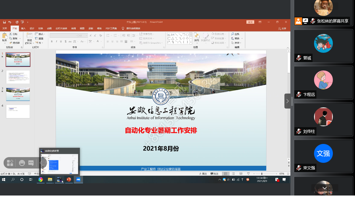 8月9日下午两点,以“自动化专业暑期工作安排”为主题的自动化教研室工作会议在腾讯会议举行。本次会议由自动化教研室副主任张松林主持,教研室全体老师参加。